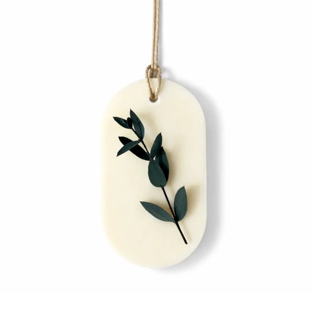 Odorizant pentru dulap & sertare (tabletă parfumată) realizat manual din ceară naturală de soia (origine Suedia) și parfumat cu ulei parfumat premium. Are un decor elegant cu frunze naturale de eucalipt și oferă o difuzie treptată, ideală pentru haine și spații mici.